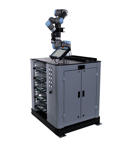 - Up to 10 drawers to hold massive amount of blanks. Operator loads on one side, robot unloads from the other.